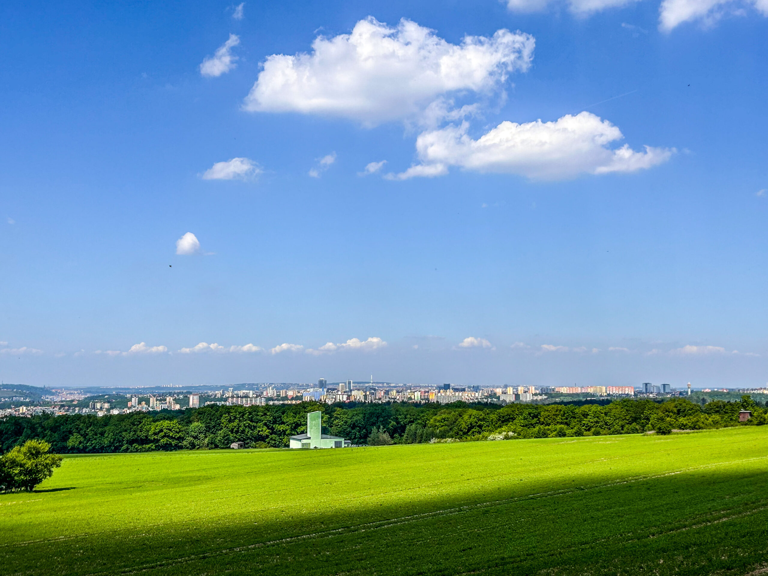 Po wjechaniu na szczyt wzniesienia znalazłem tam tablicę informacyjną, z której wyczytałem, że jest to de facto drugi najwyższy szczyt Pragi, a faktyczne, najwyższe zniesienie znajduje się 30 km ode mnie.,,