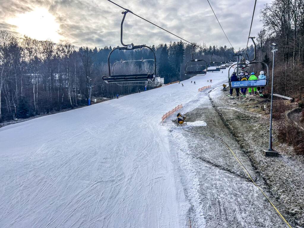 Ośrodek działał już od kilku tygodni, kilka dni temu odbyły się w nim zawody, co trzeba przyjąć z uznaniem, biorąc pod uwagę, że taki „Puchatek” w Szklarskiej ruszył dopiero w święta. Wzdłuż trasy widać nowoczesne armatki, a także urządzenie „Snow Factory”.
