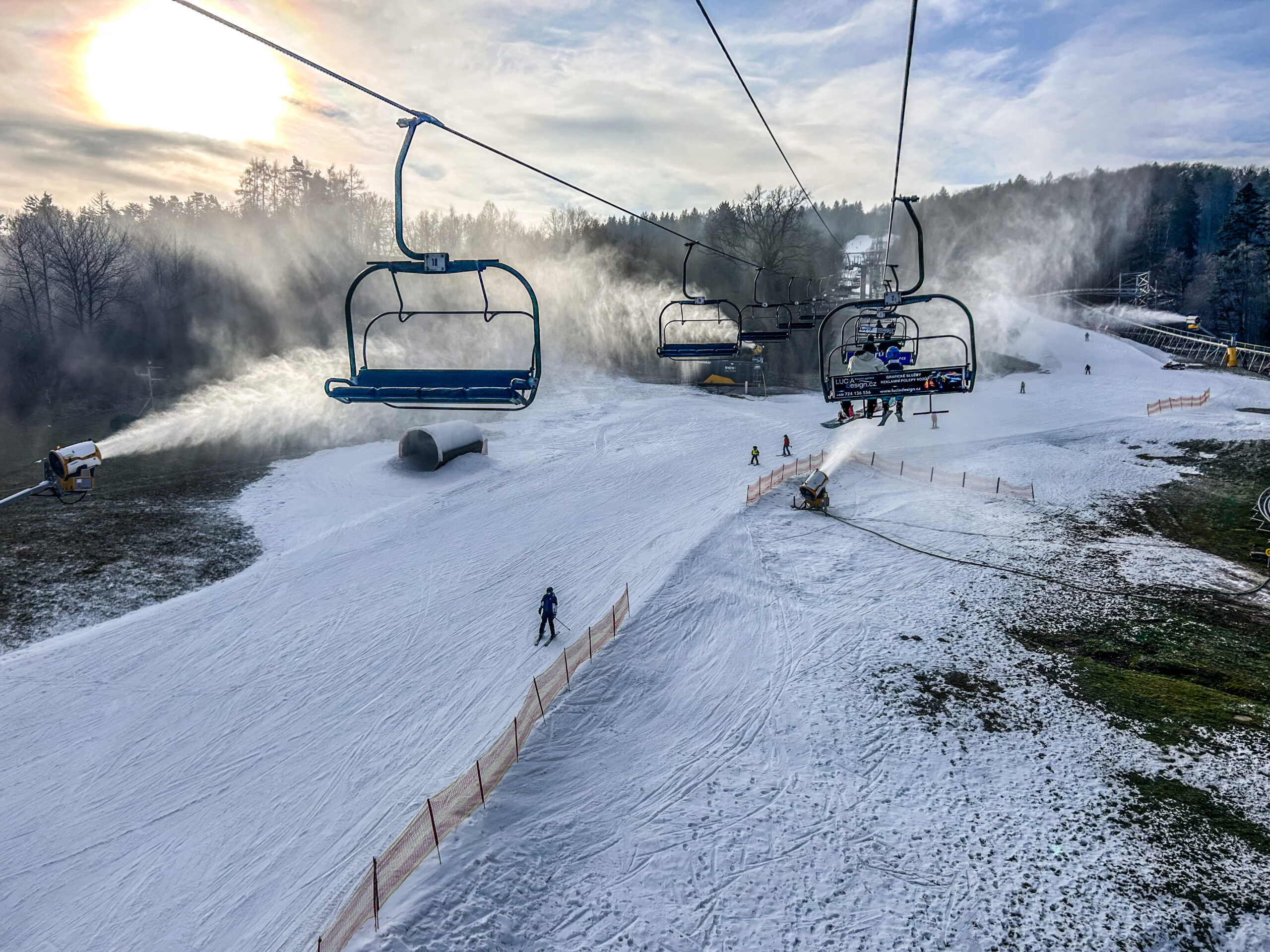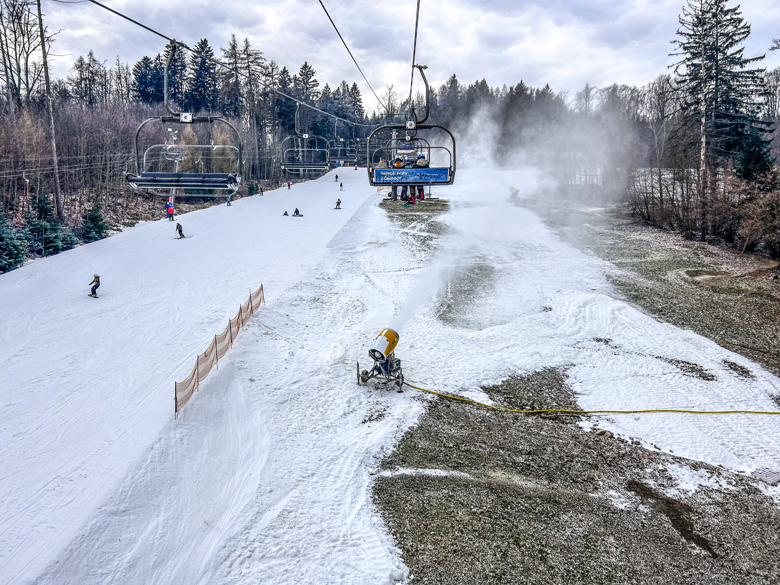 Ośrodek działał już od kilku tygodni, kilka dni temu odbyły się w nim zawody, co trzeba przyjąć z uznaniem, biorąc pod uwagę, że taki „Puchatek” w Szklarskiej ruszył dopiero w święta. Wzdłuż trasy widać nowoczesne armatki, a także urządzenie „Snow Factory”.